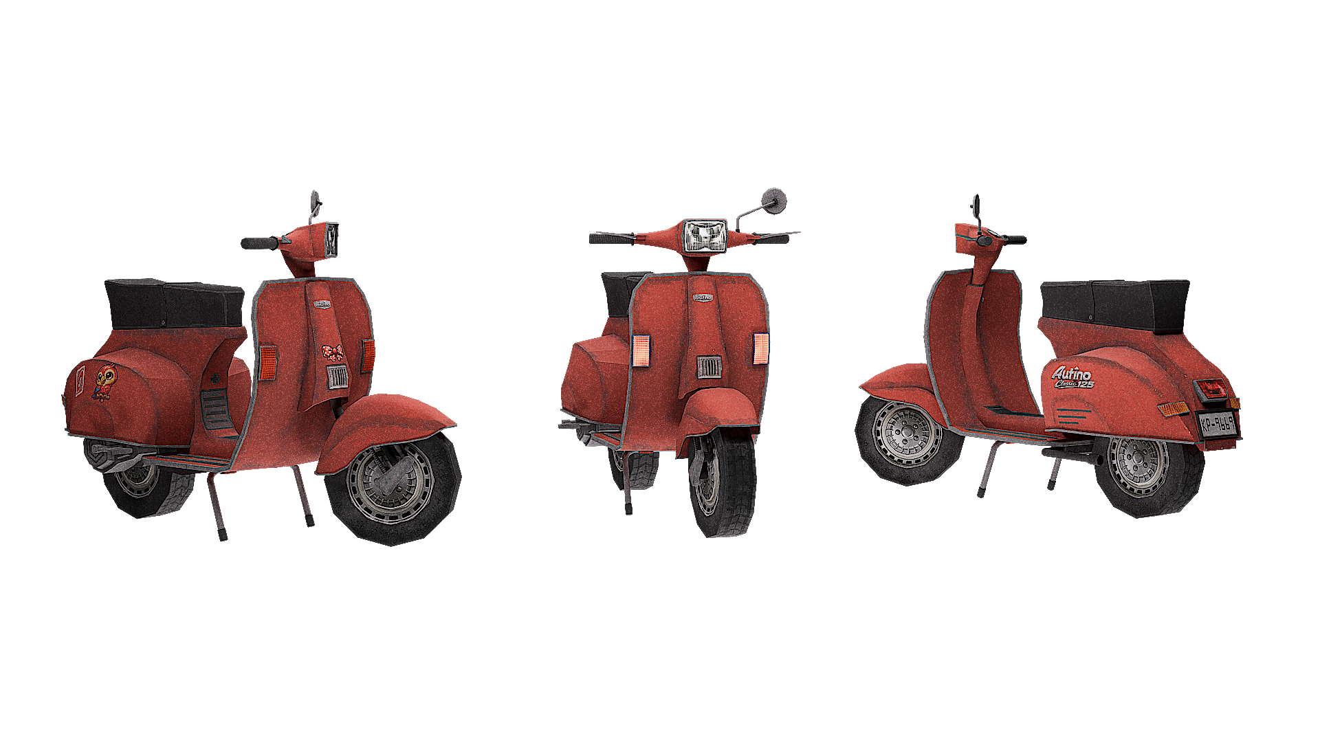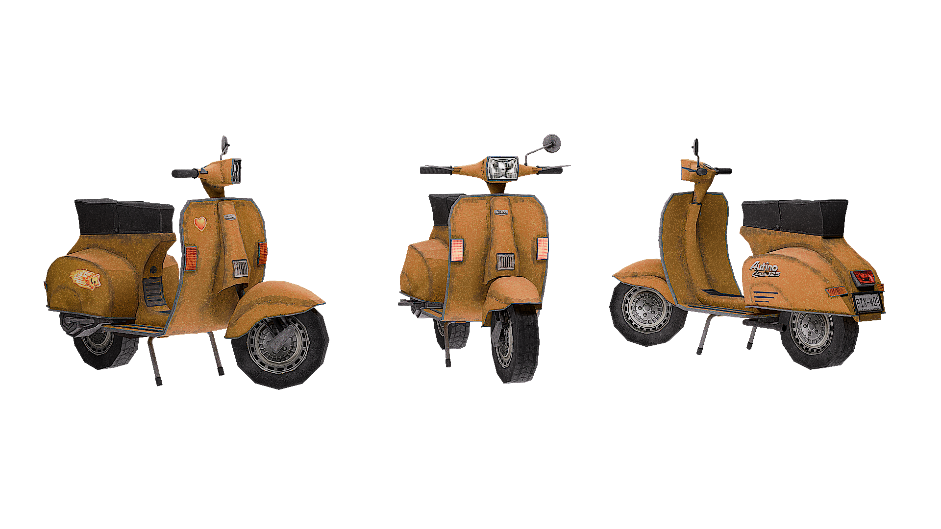 Separated tires and handle parts, making it animation-ready and easy to customize. Perfect for retro and stylized game projects.